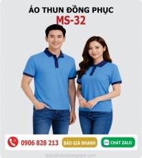 - Áo Thun Đồng Phục MS-36 Đỏ Phối Xanh Cổ Trụ
