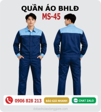 Mẫu MS42 sử dụng form quần áo bảo hộ lao động truyền thống, áo dài tay phối màu nổi, giúp tổng thể gọn gàng và phù hợp nhiều vị trí công việc.